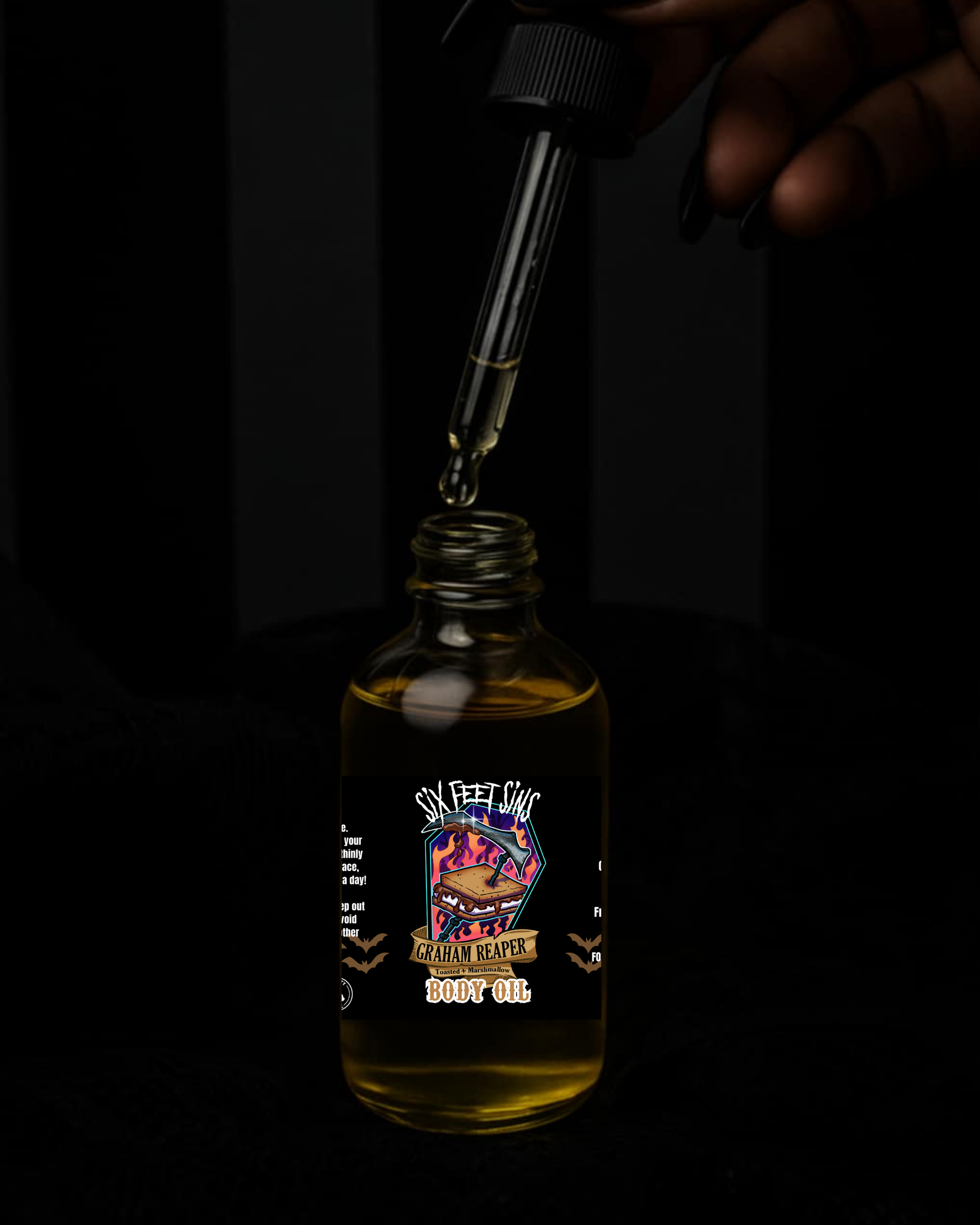 This graham and marshmallow body oil cocoons your skin in deep hydration with the cozy pull of toasted sweetness.